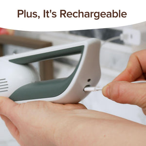The cordless design and rechargeable battery make it easy to use anywhere, without the hassle of cords. -
